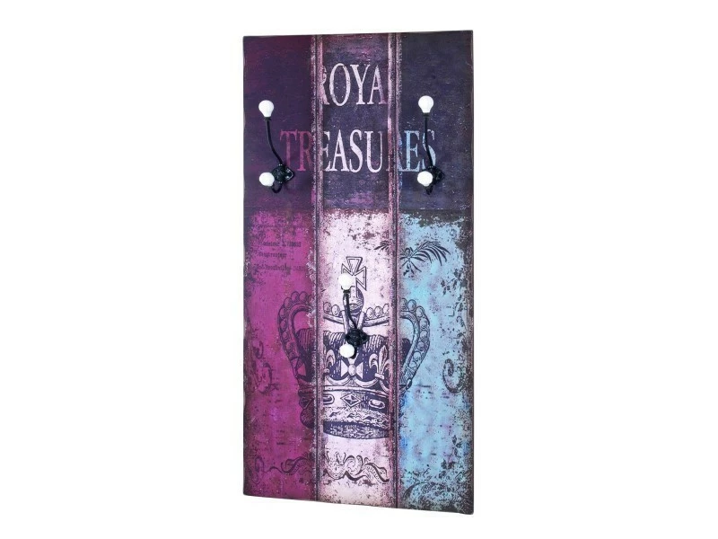 Splendide NUANCEMEUBLE garderobe murale Basseterre multicolore L40 x P12 x H80 cm en MDF style vintage, 3 crochets en métal noir et boutons céramique blanc 4.7kg
