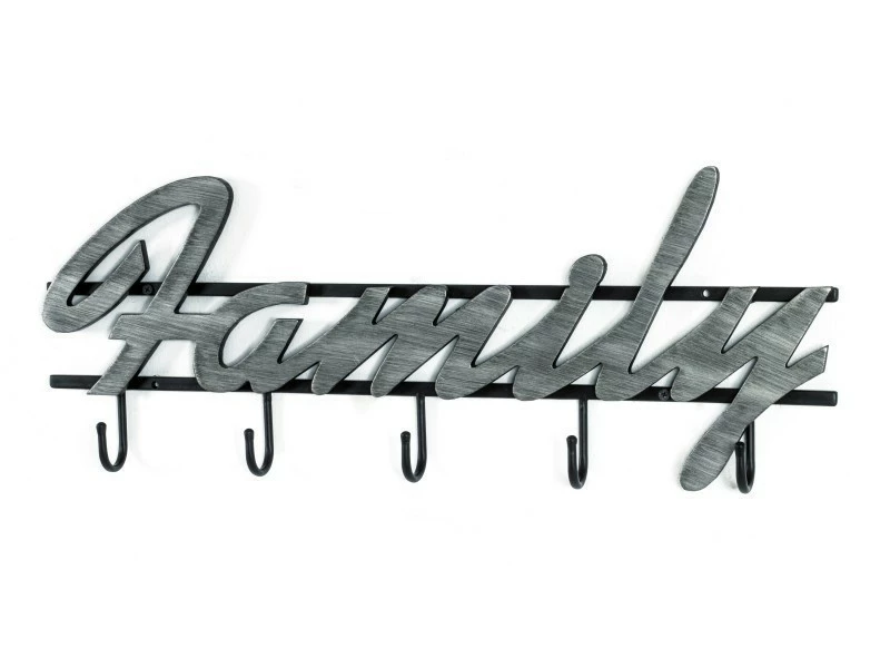 Splendide NUANCEMEUBLE garderobe murale Pretoria noir-argenté L60 x P4 x H23 cm cadre en métal laqué noir, écriture en MDF laqué argent, avec 5 crochets 1kg