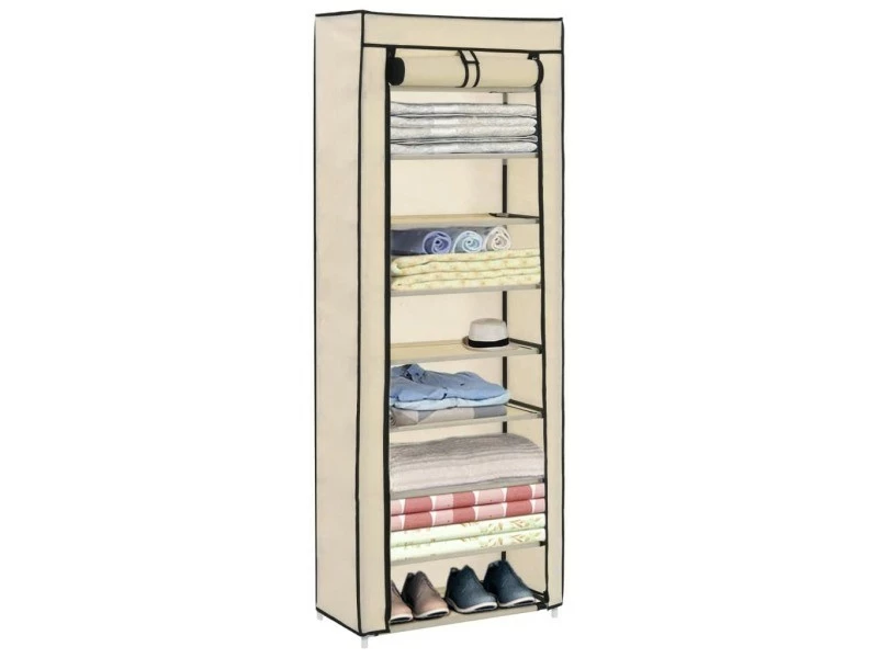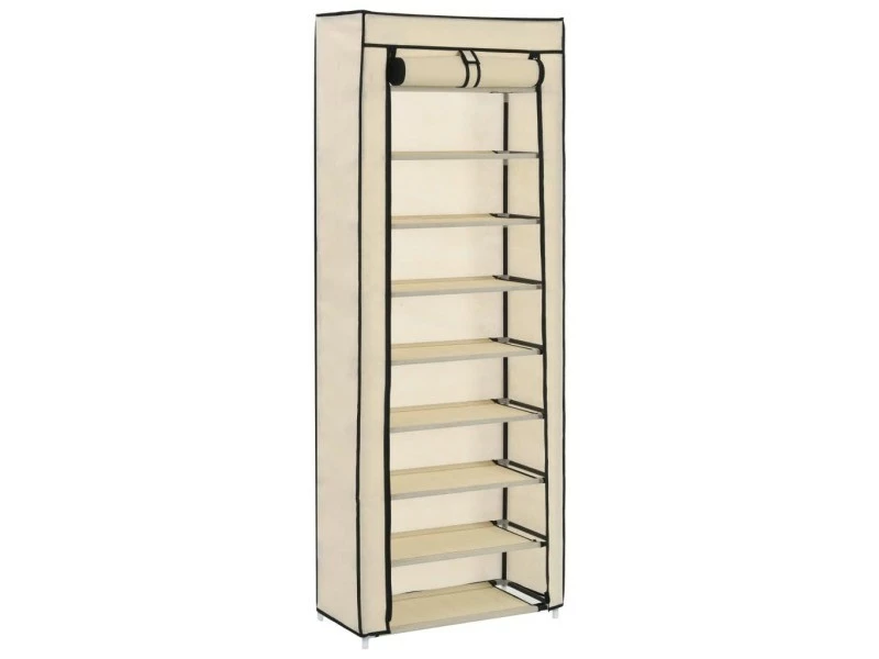 ICAVERNE Splendide Rangements pour armoires à vêtements famille Port-Louis Armoire à chaussures avec housse Crème 57x29x162 cm Tissu Cette armoire à chaussures de haute qualité, avec un design à 8 niveaux, pourrait parfaitement accueillir toute une collection de chaussures pour vous. Vous ne devez plus être ennuyé par le problème des chaussures en désordre dans votre maison. Grâce au design à 8 niveaux, cette armoire à chaussures peut contenir 20 paires de chaussures, gardant ainsi toutes vos chaussures bien rangées en un seul endroit. La housse non tissée de haute qualité avec fermetures à glissière peut garder vos chaussures hors de vue, empêchant vos chaussures de la poussière en même temps. L’armoire à chaussures est légère, donc facile à déplacer. Couleur : crème Dimensions totales : 57 x 29 x 162 cm (L x l x H) Matériau : tubes enduits de poudre et tissu non-tissé AVERTISSEMENT : afin d’éviter qu’il ne bascule, ce produit doit être utilisé avec le dispositif de fixation murale fourni Matériel: Polyester: 100%