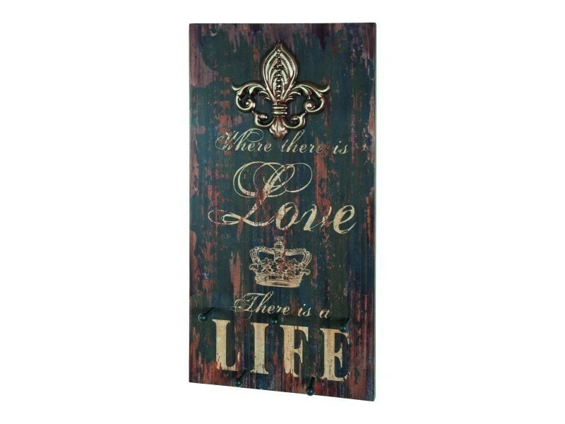 Stylé NUANCEMEUBLE garderobe murale Budapest vintage L30 x P7 x H60 cm MDF en relief style vintage, avec 5 crochets en métal noir 1.6kg