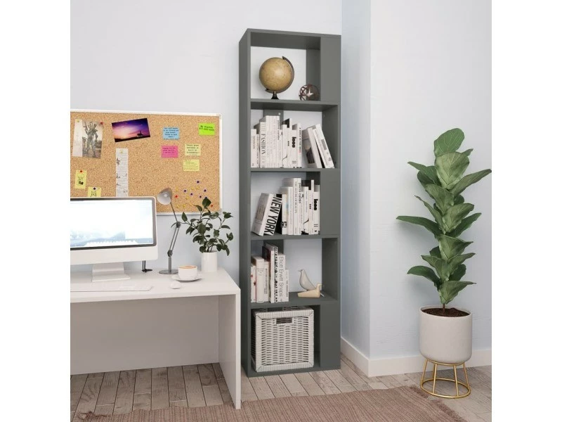 ICAVERNE sublime Étagères categorie Gaborone Bibliothèque/SĂ©parateur de pièce Gris 45x24x159 cm AgglomĂ©rĂ© DotĂ©e d’un design Ă©lĂ©gant et classique, cette bibliothèque ajoutera une touche dĂ©corative et pratique Ă votre dĂ©coration. Le meuble est fabriquĂ© en carton de qualitĂ©, ce qui lui assure soliditĂ©, durabilitĂ© et longĂ©vitĂ©. Conçue avec 5 compartiments spacieux , la bibliothèque offre un grand espace de rangement pour ranger et tenir Ă portĂ©e de main vos magazines, livres, DVD, appareils multimĂ©dias et autres objets de dĂ©coration. En outre, car elle est une Ă©tagère polyvalente, elle peut Ă©galement servir de sĂ©parateur de pièce, ce qui en fait le choix idĂ©al pour votre couloir et tout autre espace de vie. L’Ă©tagère Ă livres est facile Ă nettoyer avec un chiffon humide. Cette bibliothèque est facile Ă assembler avec des matĂ©riaux de montage inclus. Couleur : gris MatĂ©riau : agglomĂ©rĂ© Dimensions : 45 x 24 x 159 cm (l x P x H) Avec 5 grands compartiments Également utilisable comme sĂ©parateur de pièce MatĂ©riaux de montage inclus