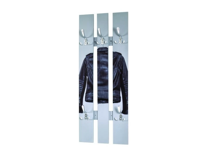 sublime NUANCEMEUBLE garderobe murale Buenos Aires gris-noir-optique inox L40 x P9 x H100 cm MDF avec impression par Ultra Violet (motif: Blouson cuir), 5 crochets en métal optique inox 3.9kg