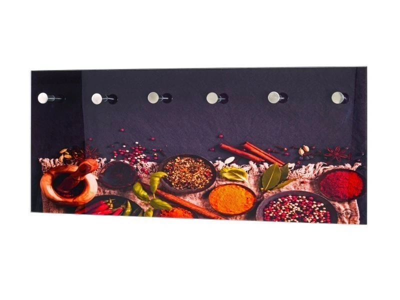 sublime NUANCEMEUBLE garderobe murale Praia multicolore L70 x P5 x H30 cm en verre trempé avec motif imprimé (épices), 6 crochets en optique inox 3.2kg