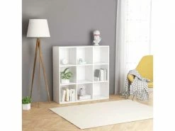 ICAVERNE Superbe Étagères collection Addis-Abeba Bibliothèque Blanc 98x30x98 cm Aggloméré Cette armoire à livres présente un design élégant et classique, ce qui en fait un supplément décoratif et pratique à votre décor. L’armoire est faite d’aggloméré de qualité, ce qui la rend robuste et durable. L’étagère, conçue avec 9 compartiments spacieux, offre un grand espace de rangement pour garder vos magazines, livres, DVD, appareils multimédias et autres objets de décoration bien organisés et à portée de main. L’étagère à livres est facile à nettoyer avec un chiffon humide. Cette armoire à livres est également facile à assembler avec les matériaux de montage inclus. » Couleur : blanc Matériau : aggloméré Dimensions : 98 x 30 x 98 cm (l x P x H) Avec 9 compartiments AVERTISSEMENT: Utilisez ce produit avec le dispositif de fixation murale fourni afin d’éviter tout renversement. Vous trouverez ici plus de détails sur la façon d’empêcher vos meubles de basculer https://www..fr/media/wysiwyg/documents/prevent_tipping_over/FR.pdf »