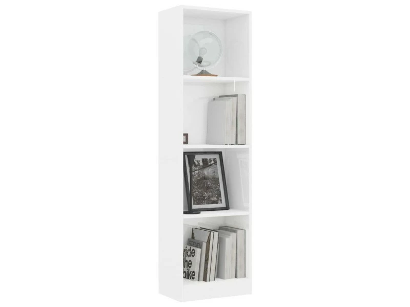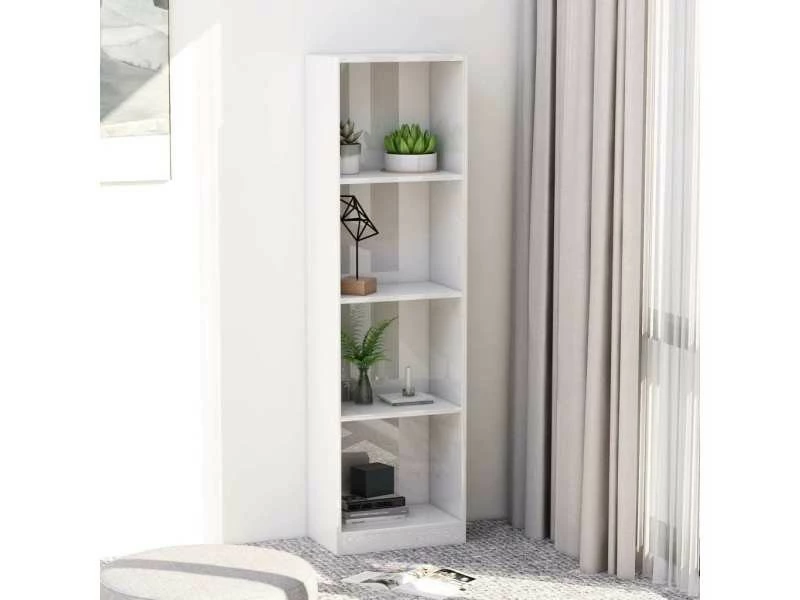 ICAVERNE Superbe Étagères edition Basseterre Bibliothèque Ă 4 niveaux Blanc brillant 40x24x142 cm AgglomĂ©rĂ© Le design moderne, Ă©lĂ©gant et minimaliste de notre bibliothèque permet de l’adapter Ă la plupart des espaces. Elle s’intègre parfaitement Ă la dĂ©coration de votre maison et ajoute un sentiment de modernitĂ© Ă votre dĂ©cor existant. FabriquĂ© en agglomĂ©rĂ© de qualitĂ©, ce meuble de livres est stable et durable. Cette armoire Ă livres de grande taille comporte 4 Ă©tagères spacieuses qui vous offrent suffisamment d’espace pour ranger et exposer n’importe quoi, comme des objets de collection, des livres, des bibelots, des cadres photo, etc. La bibliothèque est facile Ă assembler. Couleur : blanc brillant MatĂ©riau : agglomĂ©rĂ© Dimensions : 40 x 24 x 142 cm (l x P x H) Avec 4 Ă©tagères de rangement ouvertes Facile Ă nettoyer et Ă entretenir