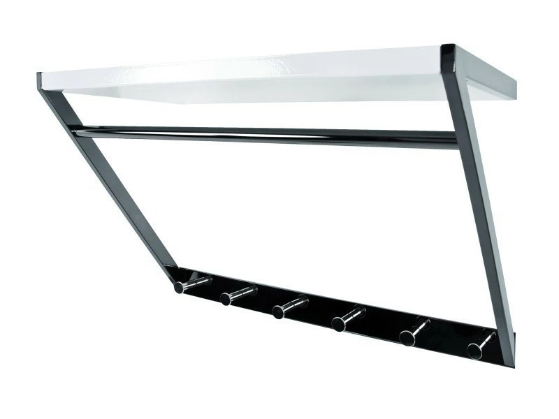 Superbe NUANCEMEUBLE garderobe murale Palikir chromĂ© foncĂ©-blanc L60 x P29 x H40 cm cadre en tube d’acier carrĂ© chromĂ© foncĂ©, avec compartiment supplĂ©mentaire en MDF laquĂ© blanc, avec patère et 6 crochets 5.3kg