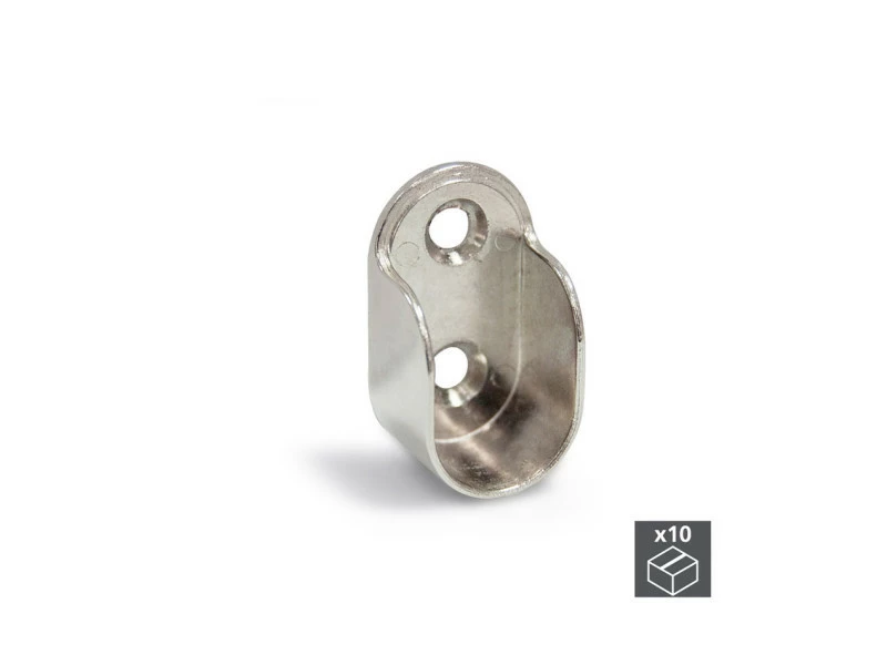Lot de 10 Supports latéraux pour barre penderie en zamak disponibles en finition nickelé ou peint aluminium.