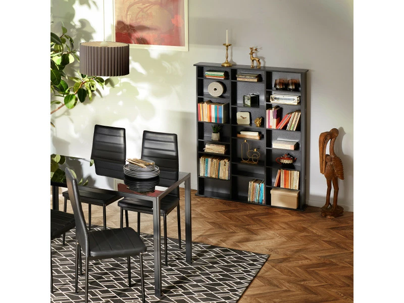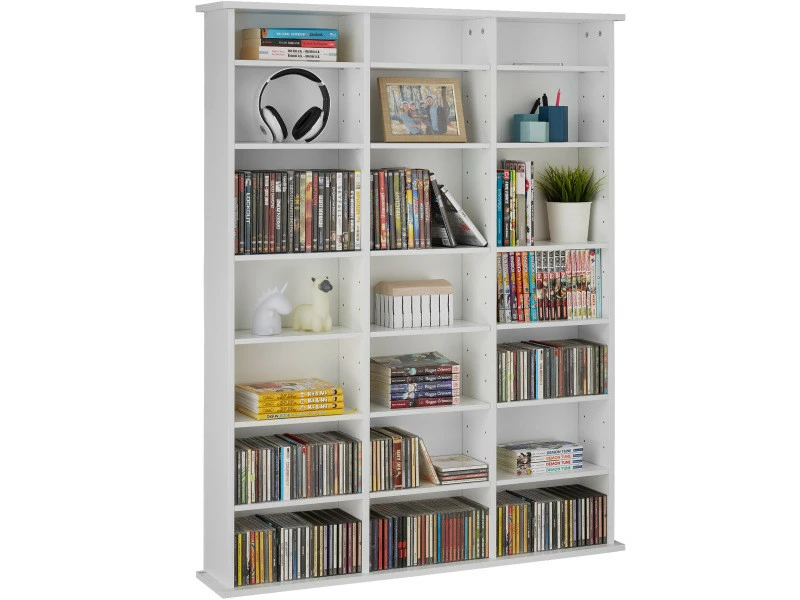 Choisissez un meuble Ă©lĂ©gant pour votre collection de CD et DVD avec l’Ă©tagère range-CD de tectake. Vous pouvez amĂ©nager son grand espace de rangement selon vos envies grâce aux tablettes rĂ©glables en hauteur. Avec son revĂŞtement en mĂ©lamine, cette Ă©tagère crĂ©e de jolis accents et convainc par sa surface anti-rayures, tout en ne nĂ©cessitant que peu d’entretien. Ce meuble solide en pan-neaux MDF offre en plus une excellente stabilitĂ©.