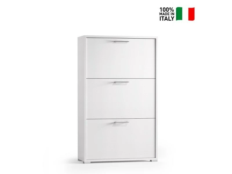 Que ce soit à l’entrée, dans le couloir ou dans les escaliers, le meuble à chaussures à trois portes de Terraneo 6003 maintiendra toujours vos chaussures de manière ordonnée. De conception simple mais en même temps fonctionnelle, grâce à sa ligne élancée, l’étagère à chaussures 6003 est idéale pour optimiser l’espace dans la maison : la profondeur réduite vous permet de tirer le meilleur parti des coins les plus petits afin que vous puissiez placez-le par exemple derrière la porte d’entrée, dans le couloir, sous l’escalier, dans un placard ou dans le dressing. Malgré sa petite taille, le porte-chaussures offre 3 compartiments confortables qui se développent en hauteur pour accueillir jusqu’à 9 paires de chaussures, tandis que les poignées qui émergent sur la finition facilitent l’ouverture des portes à rabat afin de ranger les chaussures de manière pratique et peu coûteuse. encombrant. La structure est entièrement fabriquée en Italie avec des matériaux de haute qualité sélectionnés pour assurer une longue durée de vie et une haute résistance aux chocs, aux rayures, à l’utilisation quotidienne et en même temps rend le porte-chaussures facile à nettoyer. Indispensable pour ceux qui disposent de peu d’espace et qui ne veulent pas renoncer à avoir toujours leurs chaussures en ordre, le range-chaussures 6003 se prête à ranger et à meubler facilement n’importe quelle pièce de votre maison. Choisissez parmi les finitions disponibles celle qui convient le mieux à votre mobilier. ProduceShop sélectionne uniquement les meilleurs produits pour chaque catégorie en fonction de caractéristiques qualitatives et esthétiques dans le but de ne distribuer sur le marché que des articles qui satisfont pleinement les besoins de ses clients. Caractéristiques techniques : Dimensions : 65 x 18 x 112 cm (largeur, profondeur, hauteur) Produit de qualité premium 100% Made in Italy Matière : panneau mélaminé E1 thermostructuré (épaisseur 18 mm) Surface avec texture à effet 3D et revêtement en mélamine résistant aux rayures et aux chocs Capacité : 9 paires de chaussures 3 portes avec ouverture à rabat et poignées avant pratiques Charnières métalliques robustes Pieds étanches Design moderne et peu encombrant adaptable à tout type d’intérieur, même les plus petits Idéal pour l’entrée, la chambre, le salon, le bureau et d’autres espaces Conception soignée dans les détails Facile à nettoyer et durable Fabrication de haute qualité Montage facile avec kit de fixation inclus Couleur chêne à pores blancs