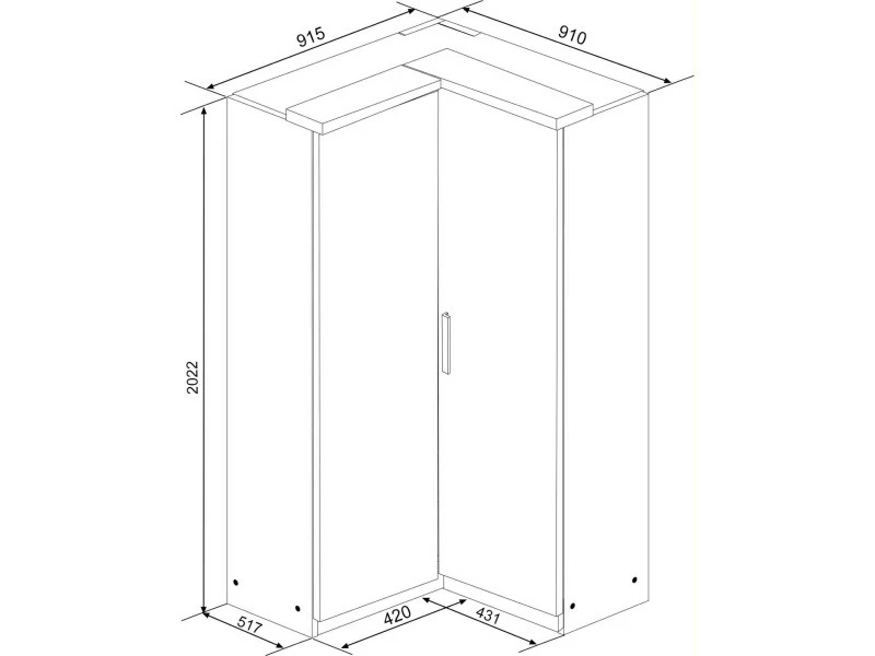 – Dimensions totales :Â Largeur : 91 cm, Profondeur : 90 cm, Hauteur : 202 cm