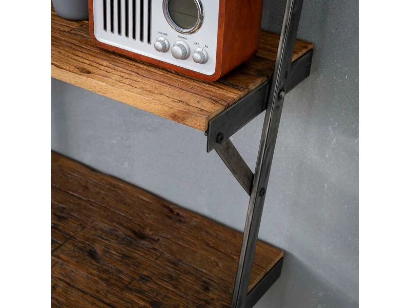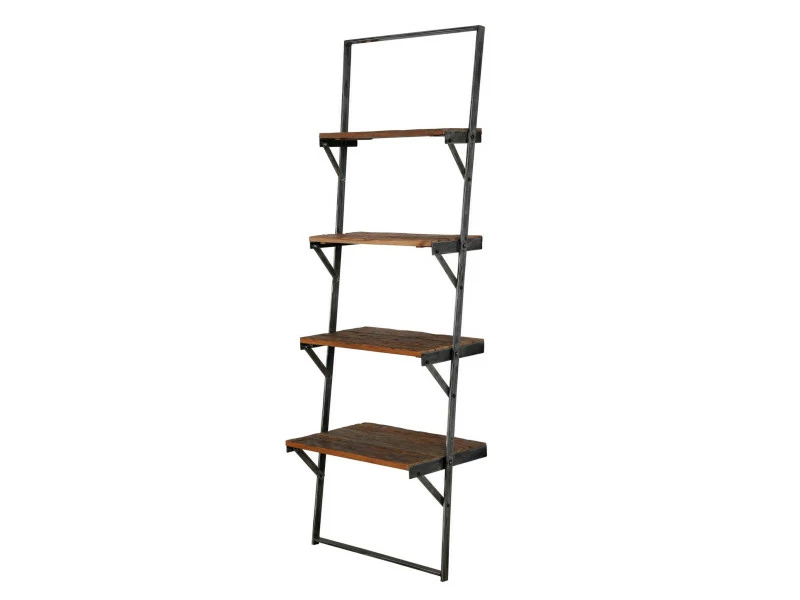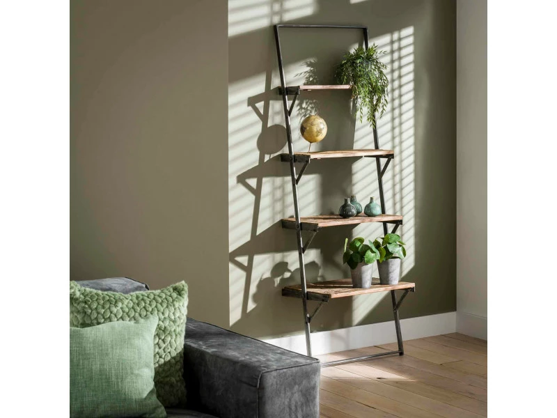 Cette bibliothèque apportera un côté industriel chic à votre chambre. Fabriquée en bois massif recyclé avec un piétement en métal sablé, elle combine élégance, robustesse et durabilité. Cette bibliothèque est équipée de 4 étagères de 56 cm de longueur. De bas en haut les largeurs des planches sont : 41 cm, 33 cm, 28 cm et 20 cm. Idéale pour combiner praticité et design dans votre chambre, cette bibliothèque saura accueillir tous vos livres et objets de décoration préférés.