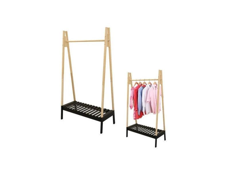 THE HOME DECO FACTORY Portant a vetement en bois – 100 x 46 x 170 cm – Noir – Design bicolore – Lignes graphiques et espace dĂ©diĂ©s aux chaussures ou au sac