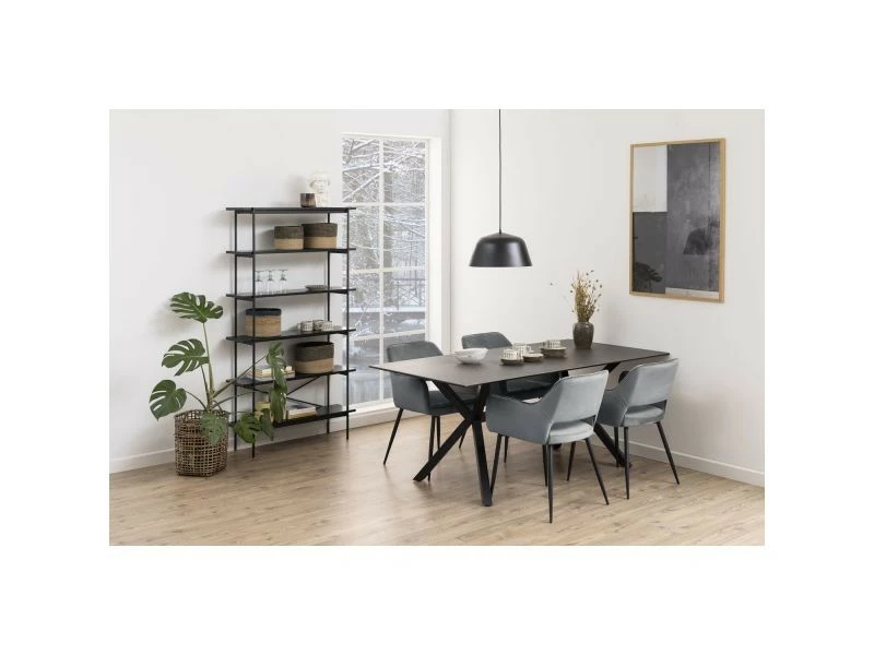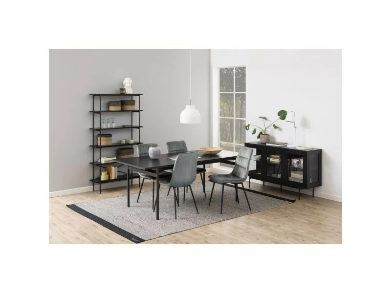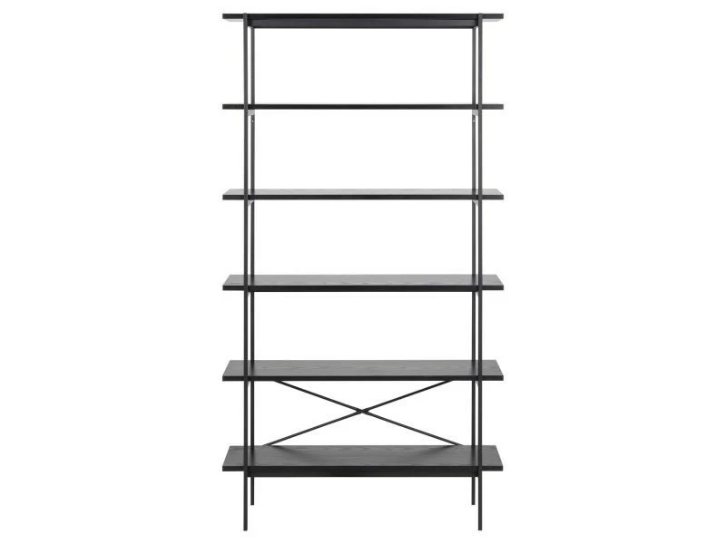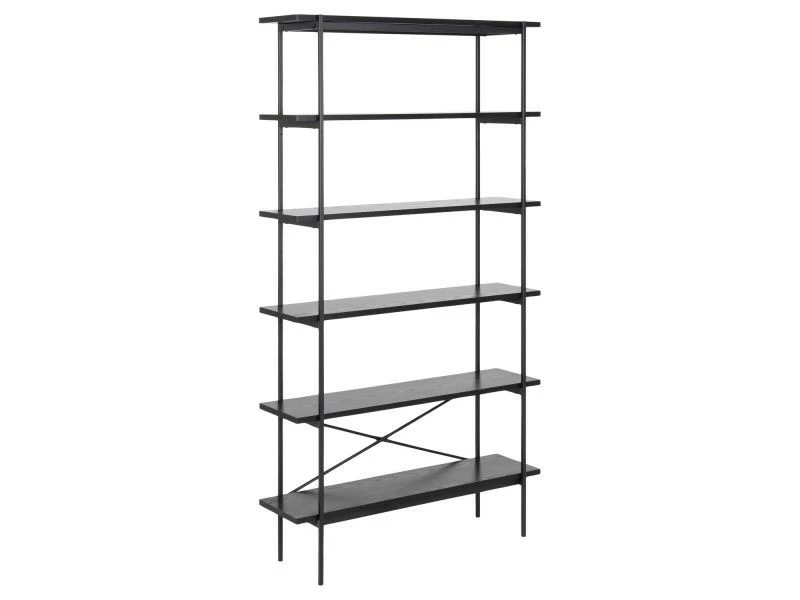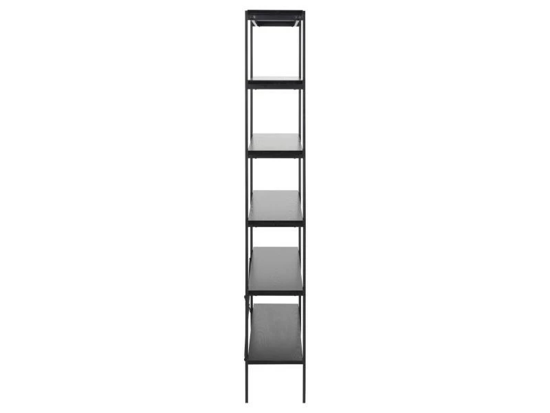 Caractérisée par des lignes épurées et une structure légère, Notre bibliothèque Aria apportera une touche de modernité à votre intérieur. Les 5 étagères en frêne noir offrent de grands espaces de rangement. Des pieds en métal enduits de poudre brute complètent le look.