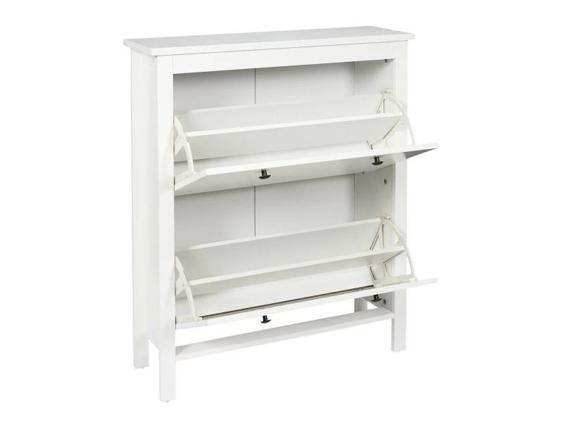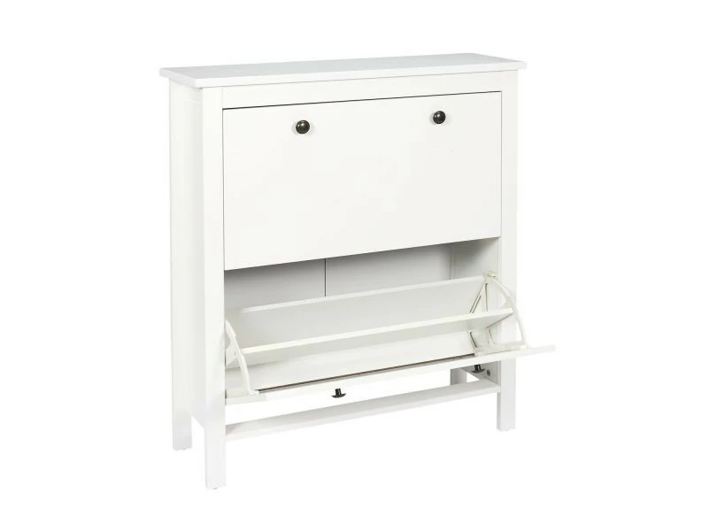 Elégant et simple, notre meuble à chaussures Elisabeth sera votre parfait allié pour obtenir une entrée rangée. Grâce à ses deux portes, il peut contenir au moins 12 paires de chaussures. On aime l’idée de décorer votre entrée en y posant un vase ou un vide poche.