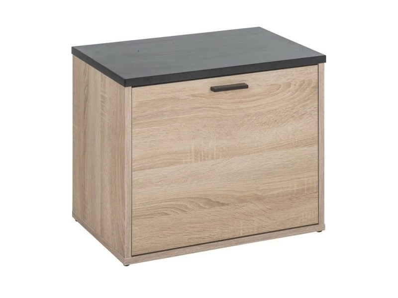 Ce meuble pourra prendre place dans une entrée où son corps revêtement Chêne naturel et son plateau teinte noire sauront s’intégrer à une déco moderne.