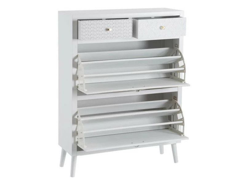 Apportez de l’originalité et de la luminosité dans votre déco avec ce meuble à chaussures 2 abattants 2 tiroirs au fort potentiel décoratif.
