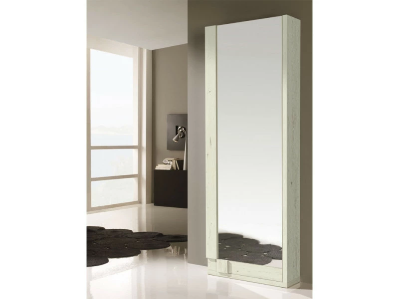 Ce meuble à chaussures d’une porte est composé de 5 étages pour ranger une quinzaine de paires de chaussures et d’une étagère. La façade de porte est habillée d’un grand miroir pratique dans une entrée.