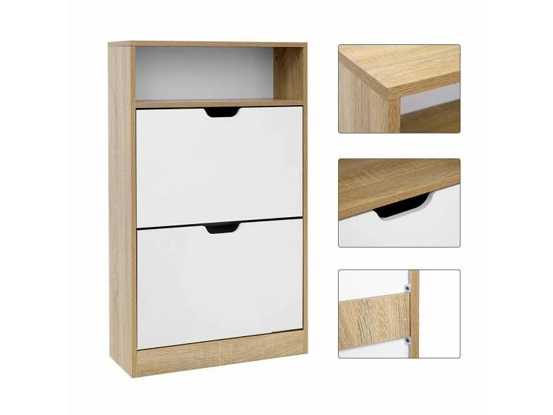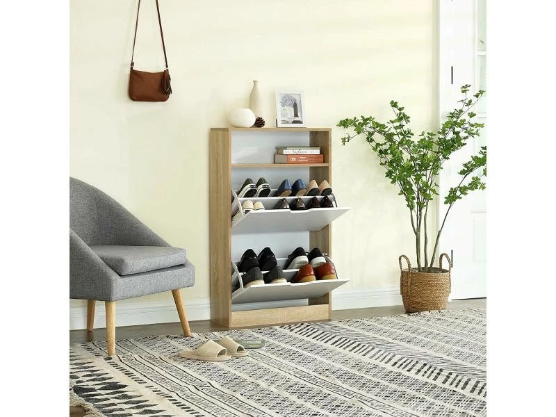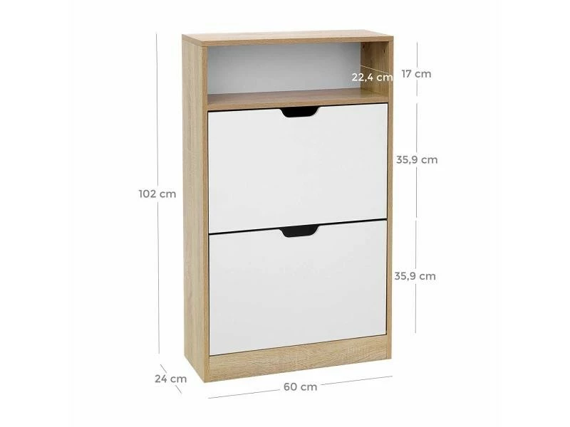D’une dimension de 60 x 24 x 102 cm, ce meuble à chaussures à 2 abattants spacieux convient aux chaussures à talons, aux bottes, etc. Il dispose de 2 compartiments pour trier vos chaussures comme des pantoufles, des baskets, des ballerines, etc. Chaque paire de chaussures y trouve sa place !