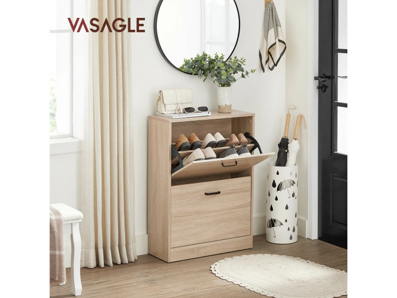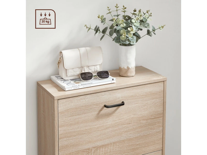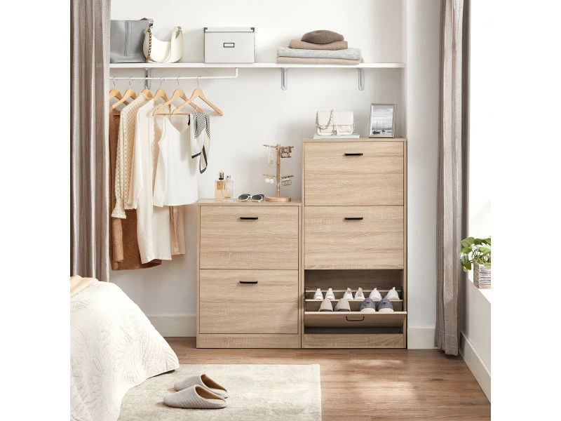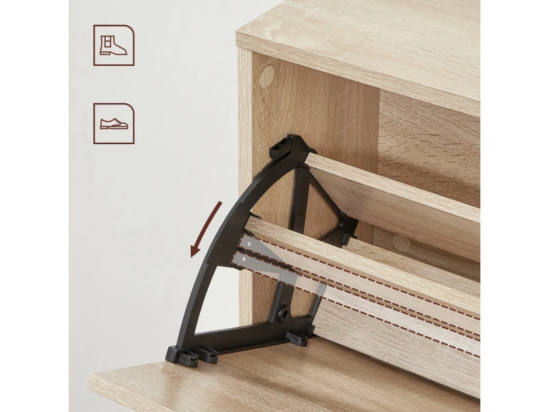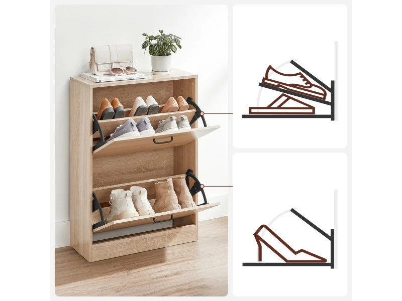 – Les 2 abattants qui peuvent accueillir jusqu’à 12 paires de chaussures femme ou 8 chaussures homme