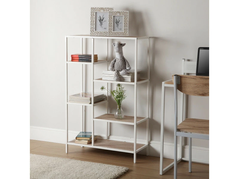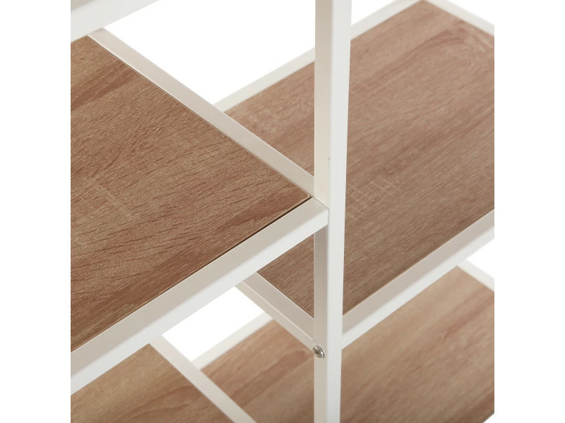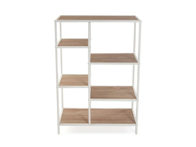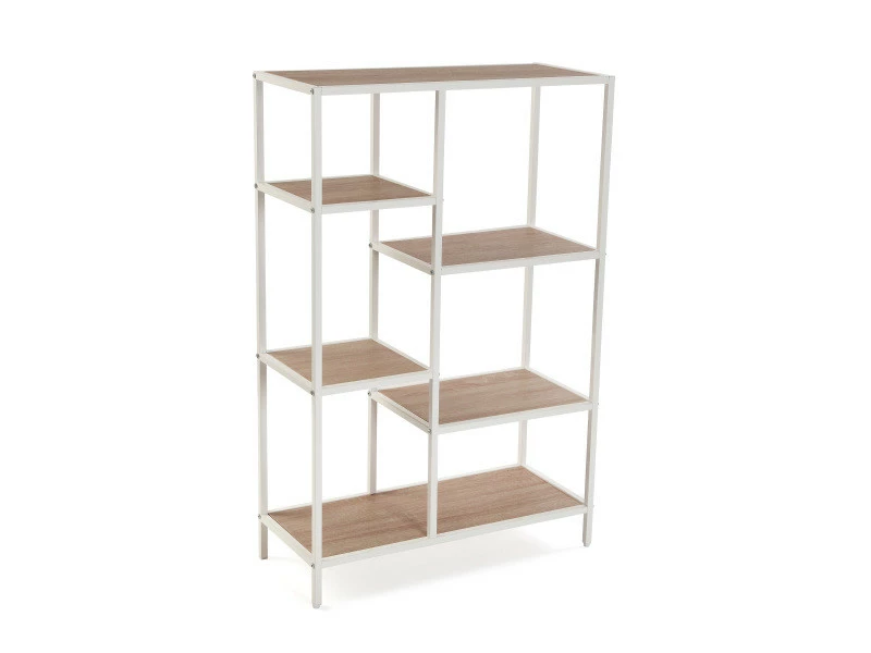 Bibliothèque de conception pour le bureau, la chambre, le salon ou la salle à manger. Notre étagère faite en Planche PB en mélamine avec bords finis à la machine et construction en acier est un accessoire idéal pour n’importe quelle maison. Sa conception et sa taille le rendent simple, multifonctionnel et facile à nettoyer. Utile, facile à installer et donnera une touche différente à votre séjour Dimensions totales: 109 x 30 x 70 cm (Hauteur x Longueur x Largeur) Poids du produit: 11,8 kg Couleur: Blanc et marron Matériel: Bois et métal Caractéristiques: – Style Industriel – Nettoyage facile – Assemblage nécessaire: Oui – Collection: Cedric Contenu du coffret: 1 x Bibliothèque 1 x instructions de montage Note de Versa Pour des raisons de sécurité, il est déconseillé aux enfants de jouer avec le produit