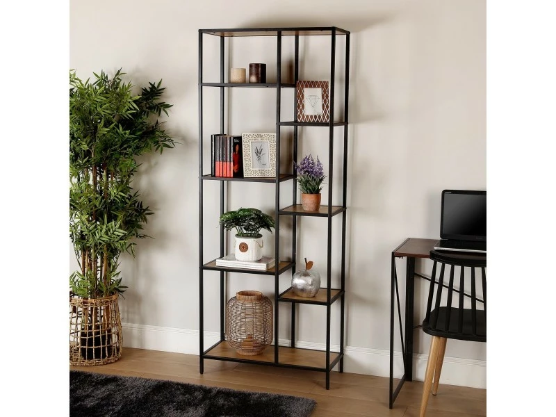 Bibliothèque de conception pour le bureau, la chambre, le salon ou la salle à manger. Notre étagère faite en Planche de mélamine PB avec chants finis à la machine et construction en acier est un accessoire idéal pour n’importe quelle maison. Sa conception et sa taille le rendent simple, multifonctionnel et facile à nettoyer. Utile, facile à installer et donnera une touche différente à votre séjour Dimensions totales: 178 x 30 x 70 cm (Hauteur x Longueur x Largeur) Poids du produit: 16,8 kg Couleur: Noir et marron Matériel: Bois et métal Caractéristiques: – Style Industriel – Nettoyage facile – Assemblage nécessaire: Oui – Collection: Cedric Contenu du coffret: 1 x Bibliothèque 1 x instructions de montage Note de Versa Pour des raisons de sécurité, il est déconseillé aux enfants de jouer avec le produit