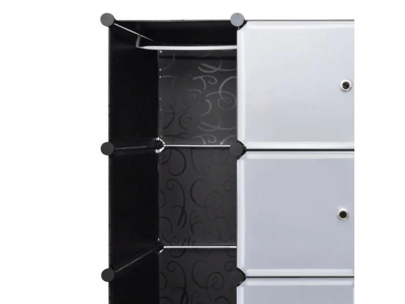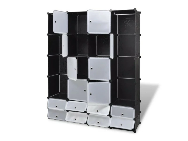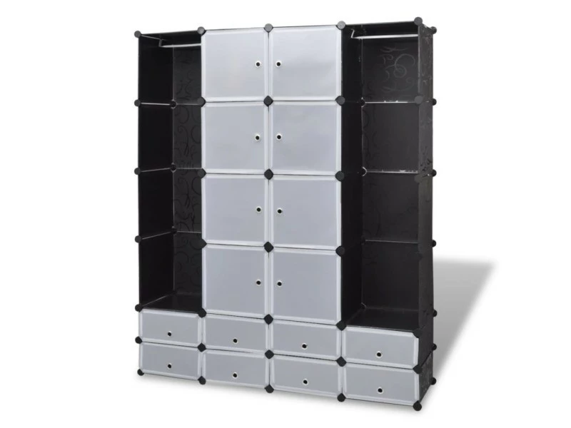 This functional modular cabinet is not only very stylish, but will keep your clothes and shoes neatly organised. It will make a great addition to your nursery, living room, hallway or bedroom. The wardrobe is made of plastic elements and chromed steel wire, which makes it easy to clean. Thanks to its clever design, the cabinet can be set up quickly and easily in different configurations, to suit the space, or your mood. Please avoid putting too much stress on the shelves and note that the plastic is inflammable.