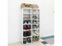 Gardez vos chaussures loin de l’encombrement et créez un environnement bien rangé avec ces élégantes armoires à chaussures ! Fabriquée en aggloméré de qualité, leur confère un aspect raffiné et les rend stables et durables. Cette étagère à chaussures n’occupe qu’un petit espace et est idéale pour les coins étroits, comme l’espace sous les escaliers. Chaque armoire comprend 6 étagères et peut contenir beaucoup de chaussures.