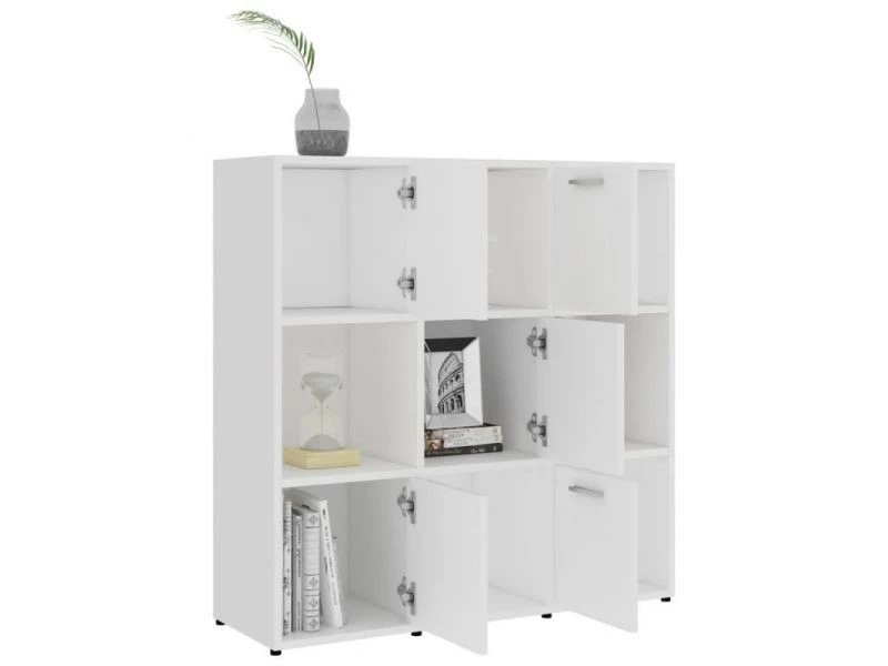 Cette armoire à livres chic, avec un espace de rangement spacieux, rend votre pièce frappante et bien rangée ! L’armoire est faite d’aggloméré de qualité, ce qui la rend robuste et durable. L’étagère, comporte 9 compartiments, dont 5 avec portes, qui off