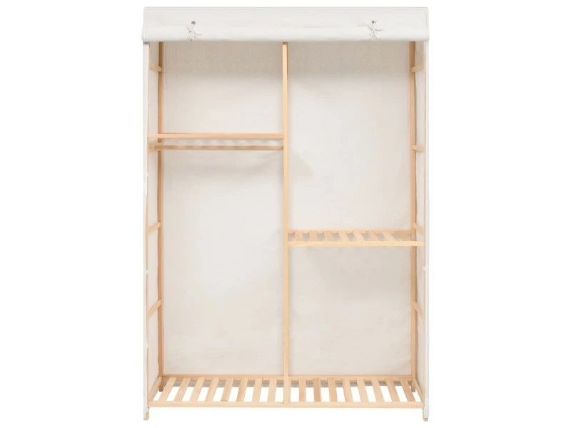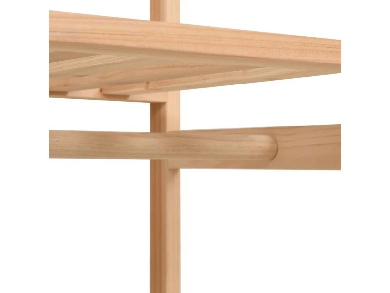 Nos garde-robe fonctionnelle est non seulement une solution de rangement parfaite pour vos vêtements, chaussures, accessoires, elle constitue également un supplément décoratif unique à votre maison grâce à son design élégant et chaleureux. Les 3 niveaux sont parfaits pour ranger des vêtements, des serviettes ou des chaussures. Il y a un rail pour suspendre des blouses, des chemises, des pantalons ou des vestes. Le cadre en bois assure la stabilité. L’assemblage est facile.