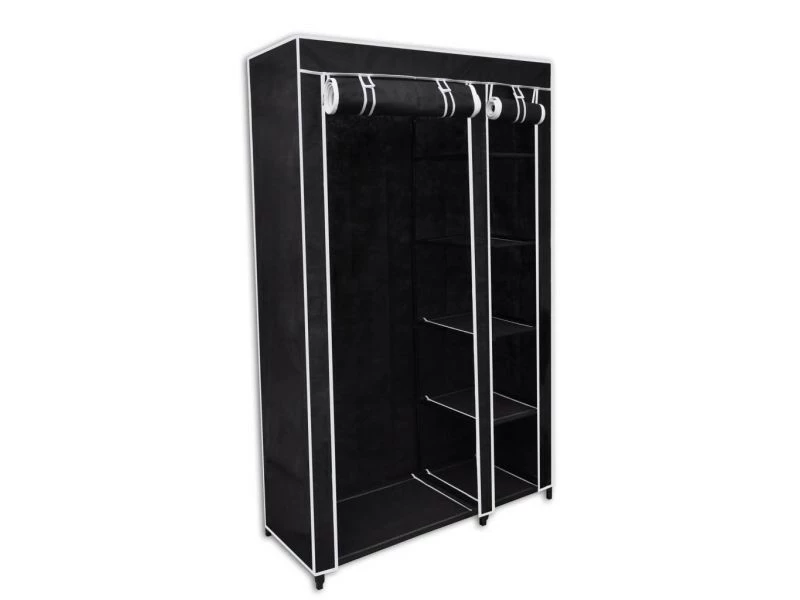 Cette garde-robe pliable peut être placée au sous-sol, dans la chambre à coucher, dans le grenier ou comme armoire portable pour les activités de camping. Vos vêtements seront toujours très bien conservés. Parce qu’elle est pliable, elle est peu encombrante et facile à assembler. La porte roulée est fixée à l’aide d’attaches à boucles et à crochets, qui protègent vos vêtements de la poussière et de la saleté. Les fermetures à glissière sont faciles à ouvrir et à fermer. La couverture de la garde-robe est en tissu polaire et la structure est en tubes d’acier.
