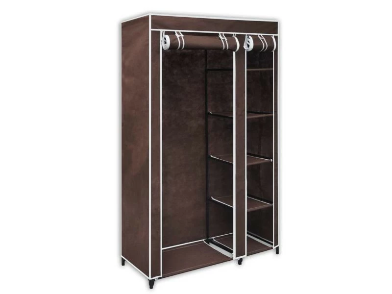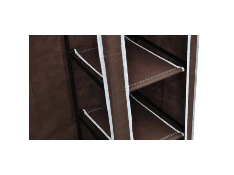 Cette garde-robe en tissu peut être utilisée dans le sous-sol, la chambre à coucher, le grenier et même au camping, etc. Vos vêtements seront toujours très bien tenus. Elle est pliable, donc c’est un gain d’espace. La porte enroulée est attachée avec des attaches à boucles et à crochets. La porte protège vos vêtements contre la poussière et la saleté. Grâce aux fermetures à glissière, elle est facile à ouvrir et à fermer. Faite de tissu polaire et de tubes en acier, notre garde-robe en tissu est très durable. L’assemblage est vraiment facile.