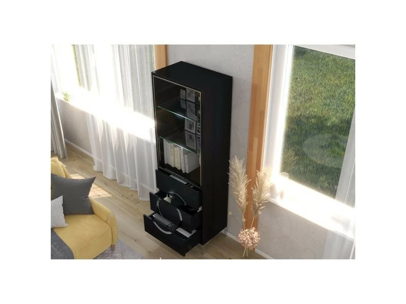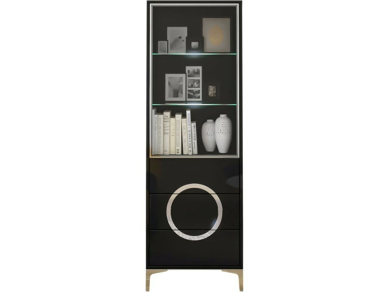 Avec des représentations de styles modernes renouvelés, nos vitrines élégantes et raffinées combinent parfaitement le côté pratique du meuble autant qu’un design parfaitement maîtrisé. Idéalement élaborése et parfaitement adaptées pour les chambres, ou pour les dressings, on peut les retrouver dans chambres d’hôtels cosy. Découvrez nos différentes sélections faciles à combiner avec votre style de décoration. Longueur : 60 x Largeur : 38 x Hauteur : 180 PLUS EN DÉTAILS LES + PRODUITS • Fabrication : Européenne DIMENSIONS • Longueur (cm) : 60 • Largeur (cm) : 38 • Hauteur (cm) : 180 • Dimension article : 60 x 38 x 180 cm COULEURS • Couleurs commerciales : Noir, argent • Couleur principale : Noir • Couleur secondaire : Argent MATIÈRE DE L’ARTICLE • Matière principale : MDF • Matière : MDF • Matière d’assemblage : MDF • Matière des pieds : Métal INFORMATIONS COMPLÉMENTAIRES • Collection : Eva • Poids du produit (kg) : 58 • Assemblage à prévoir : Oui • Garantie : 2